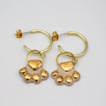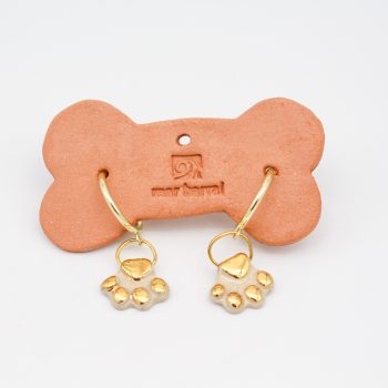 Perros de arcilla blanca modelados y decorados a mano con acabado esmalte brillo. Medidas aproximadas 10mm x 12mm. Base fornitura de plata.